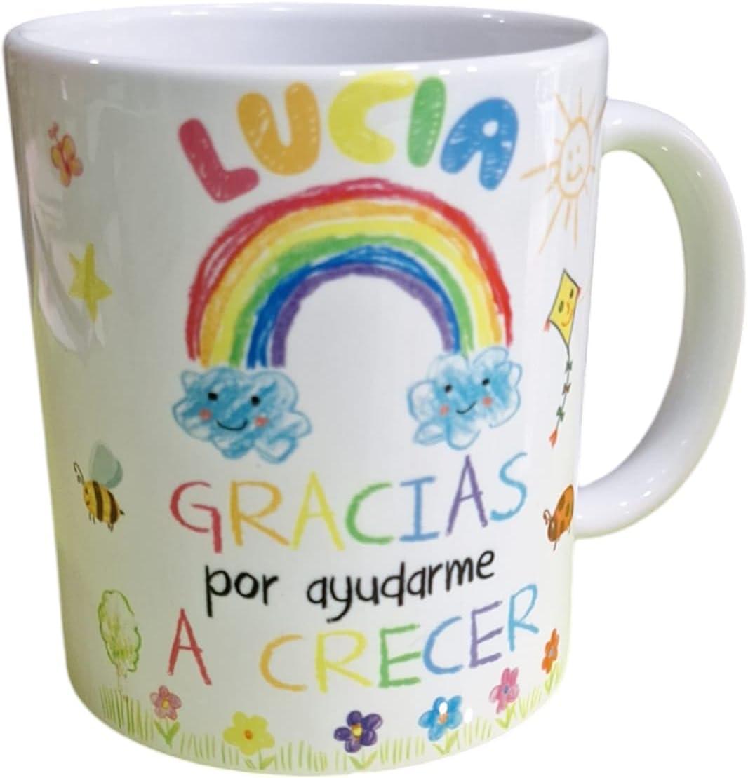 Regalo para profesora hecho con corazón, personalizable, apta para todos los docentes, profesoras de infantil, maestras de guarderia, profesores de secundaria. - Porque incluye todo lo que necesita para sus desayunos una taza de cafe personalizada apta para microondas y lavavajillas de cerámica triple AAA premiun